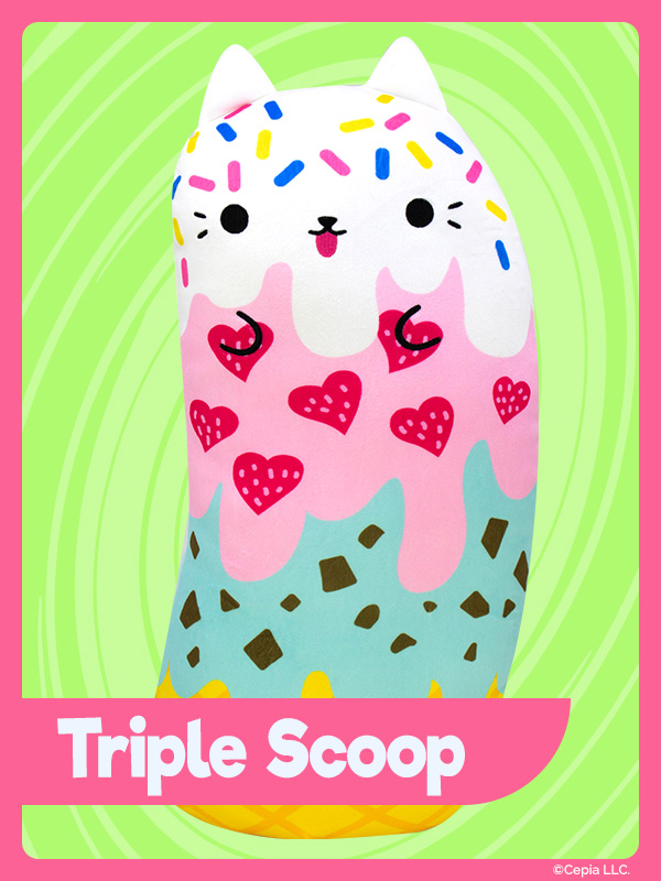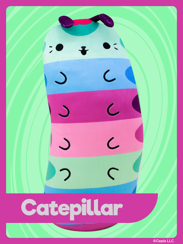 New Cats Vs Pickles “Huggers” are colorful, silly, super-soft, huggable, plush characters. They’re about 16.5 inches tall and 8 inches wide - the perfect size to snuggle with!